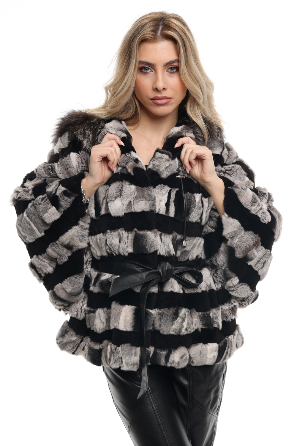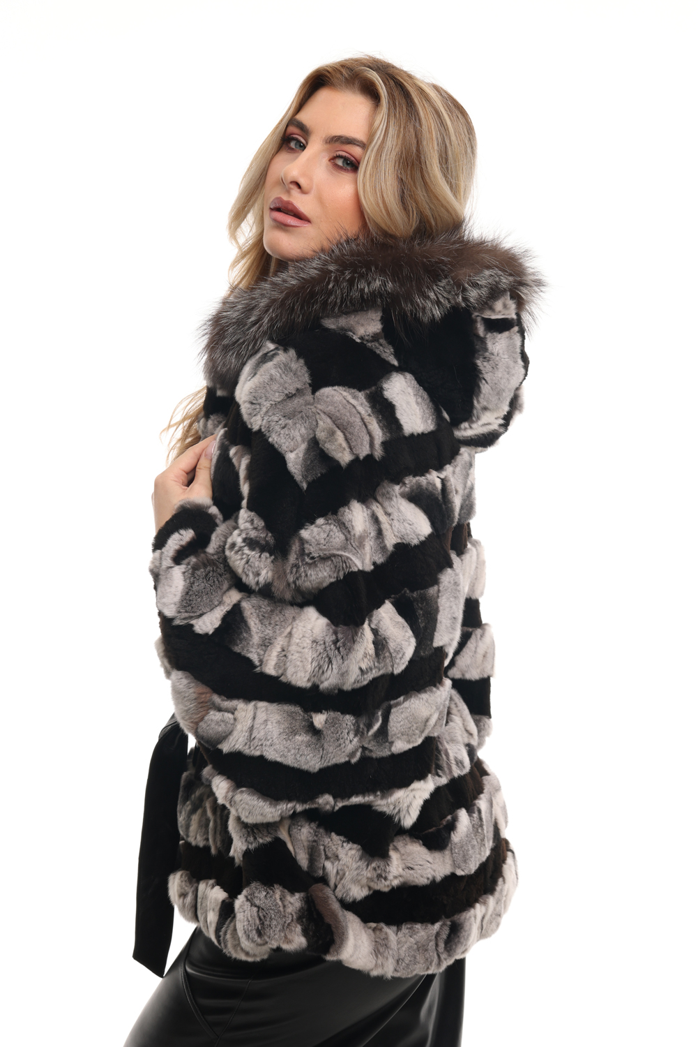 • Με κουκούλα και φινίρισμα γούνα αλεπού στο τελείωμα.