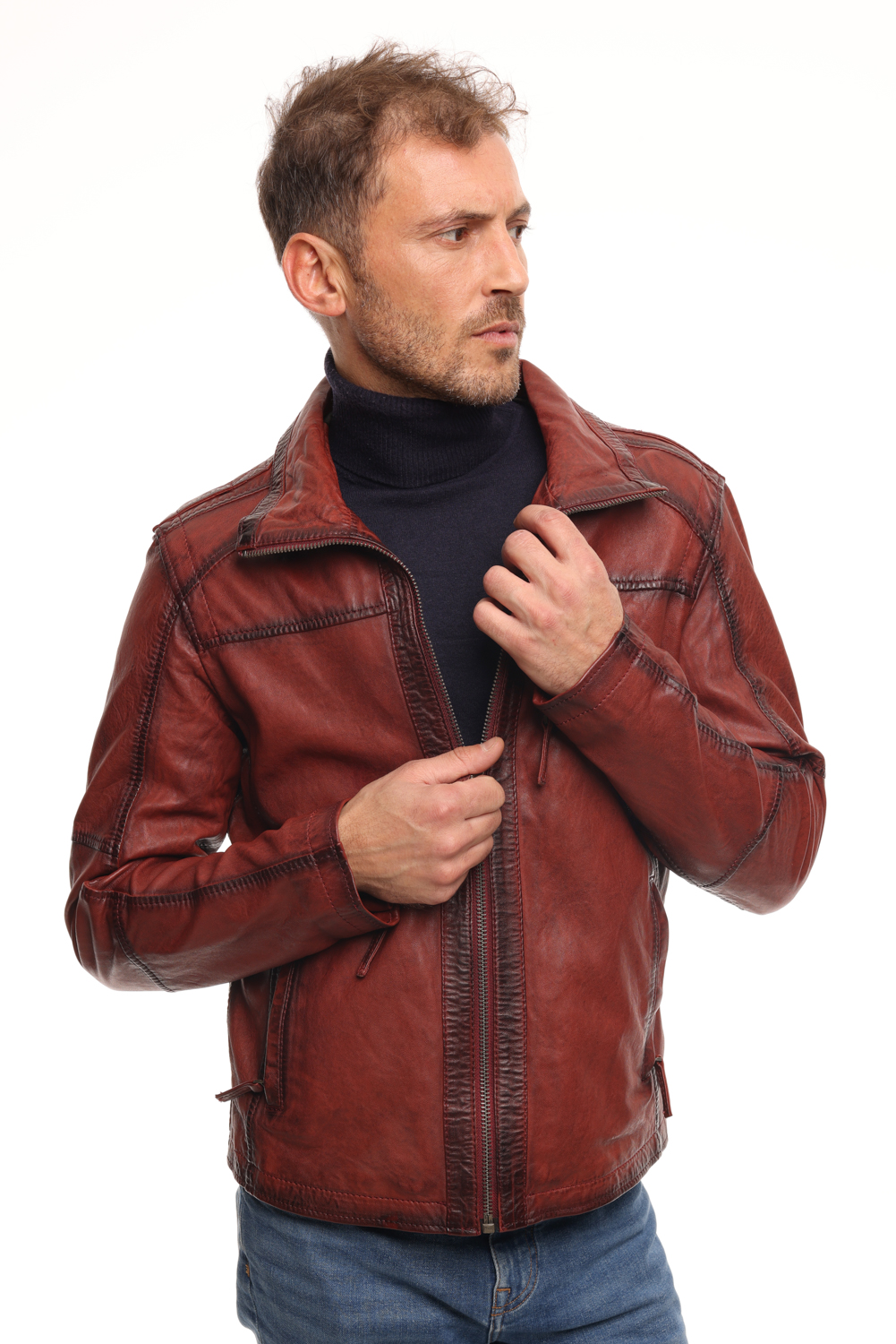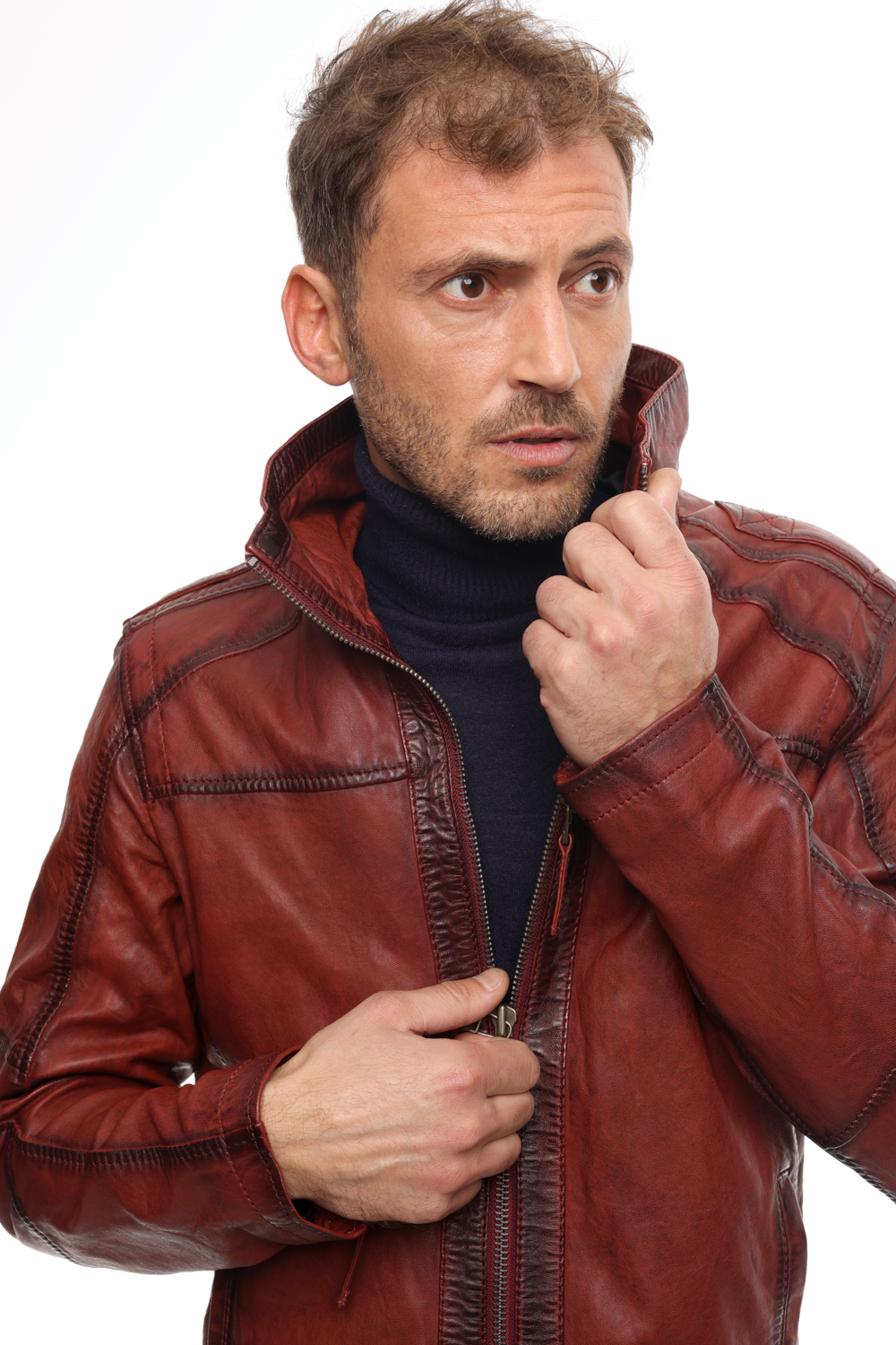 PG-51 Ανδρικό Δερμάτινο Μπουφάν Bordo