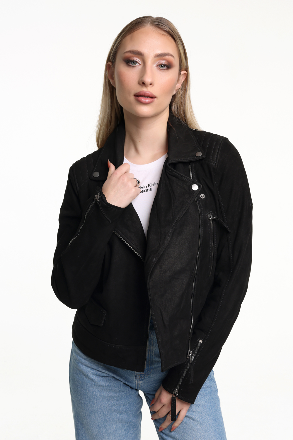 SALVANA PERFECTO Black Γυναικείο Δερμάτινο Nubuck Μπούφαν