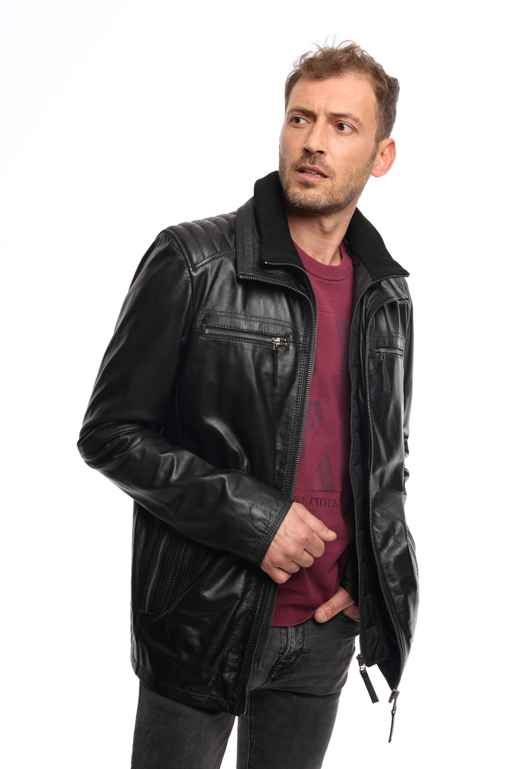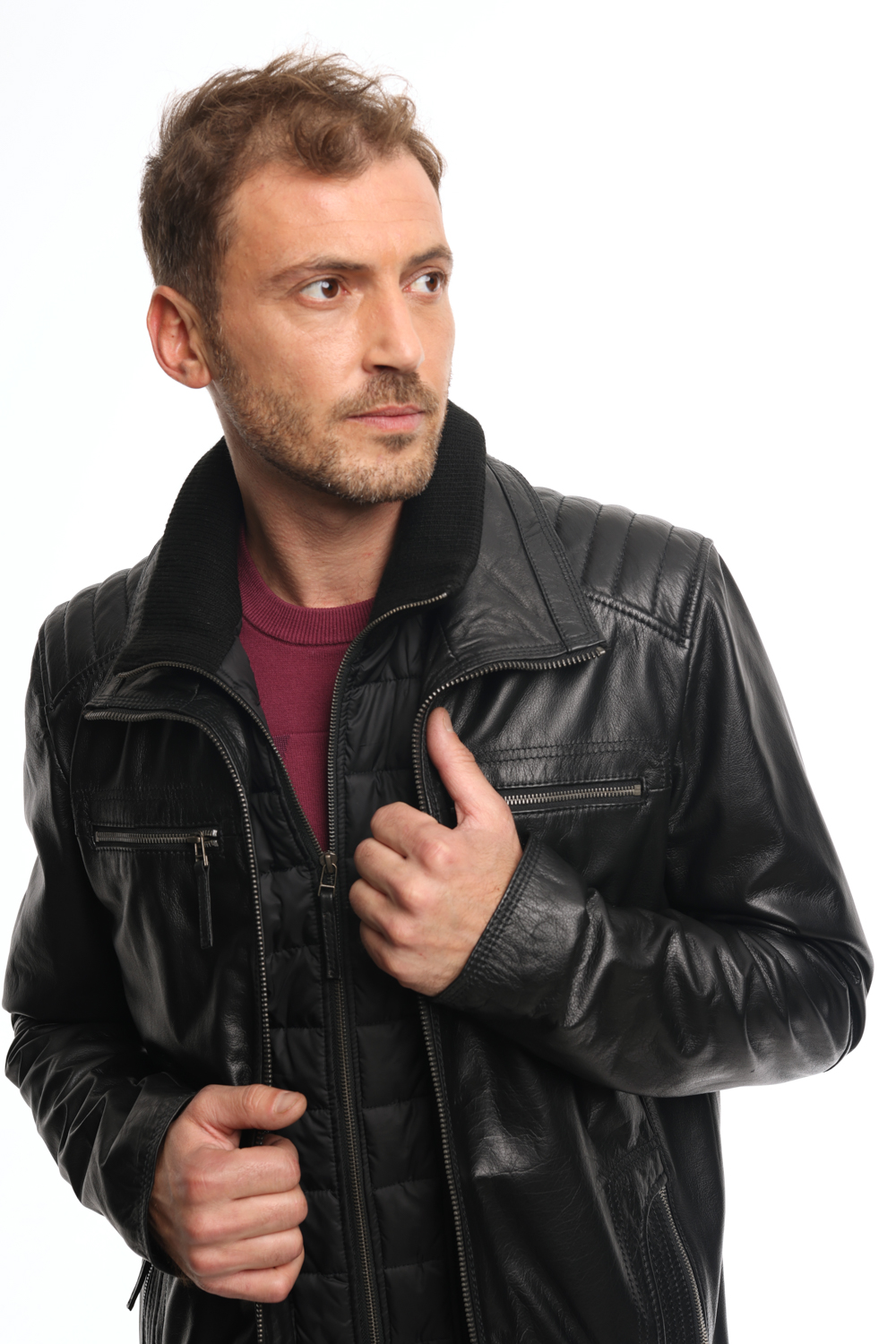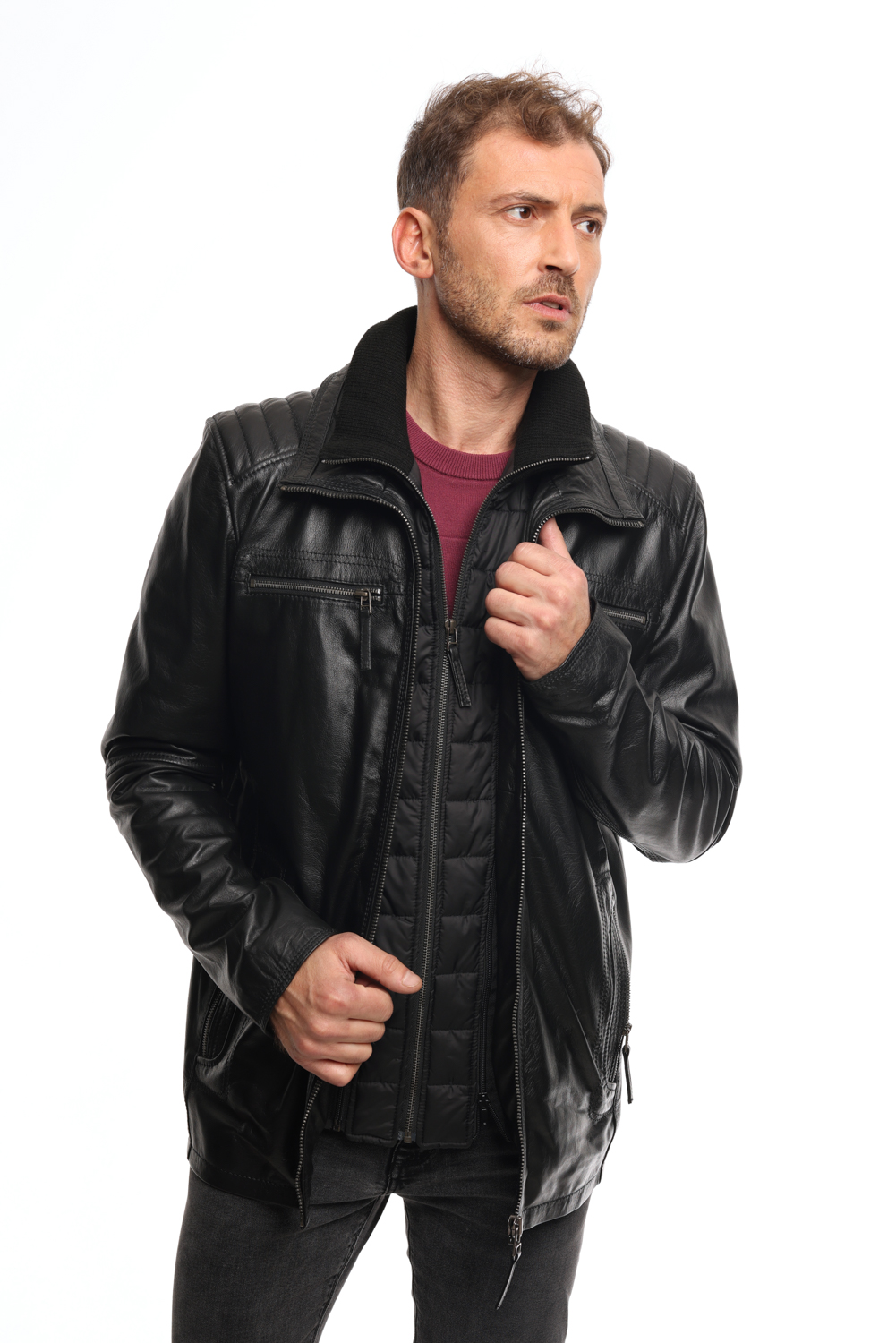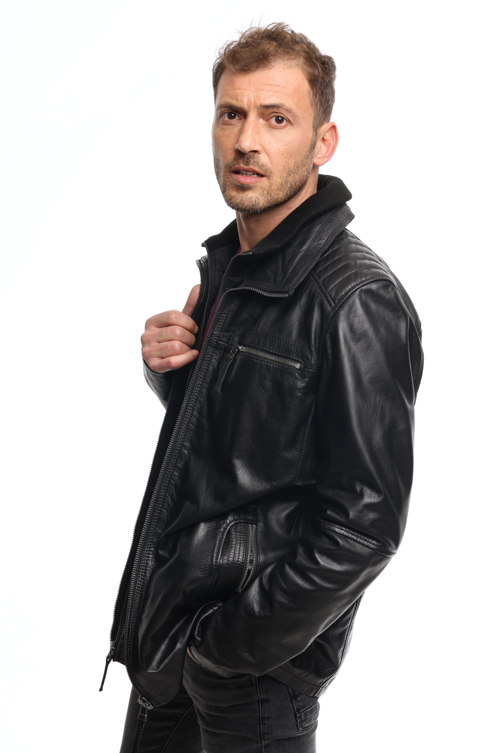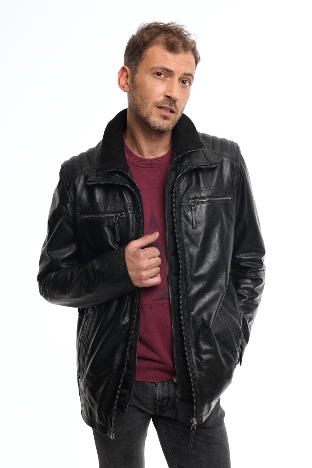 • Ανδρικό δερμάτινο μπουφάν Black.